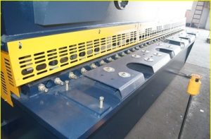 2.Backguage: Inställning på verktygssats, sväng med uppverktygssats, driven av 0,55 KW elmotor. Det bakre stoppet är utrustat med eljustering och manuell justeringsanordning, och digital displayenhet är tillgänglig för visning av stoppstorlek och skjuvningstider.